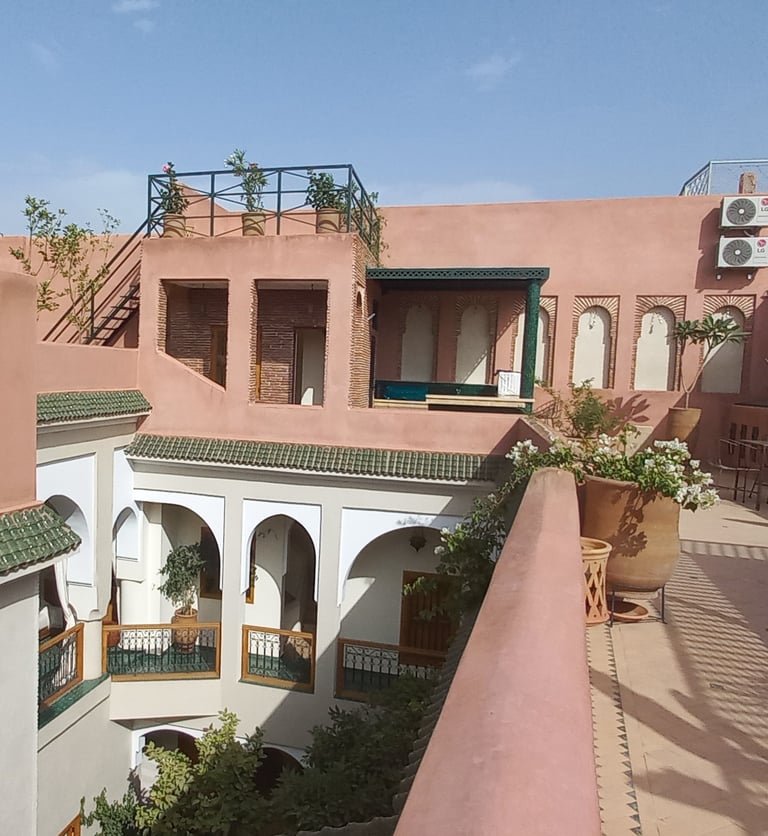 Avec un grand patio comprenant une grande piscine et planté d'orangers, ajouté à trois grandes suites élégantes, une vaste terrasse ensoleillée (comme toujours à Marrakech), et une sur-terrasse pour profiter de la vue à couper le souffle sur la ville ocre et les montagnes de l'Atlas, leur riad est un lieu idéal pour accueillir leur famille de France et partager de précieux moments. Ils y vivent à l’année, mais le mettent ponctuellement en location lorsqu’ils voyagent, optimisant ainsi leur investissement.