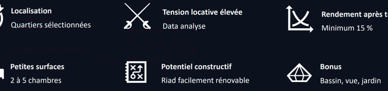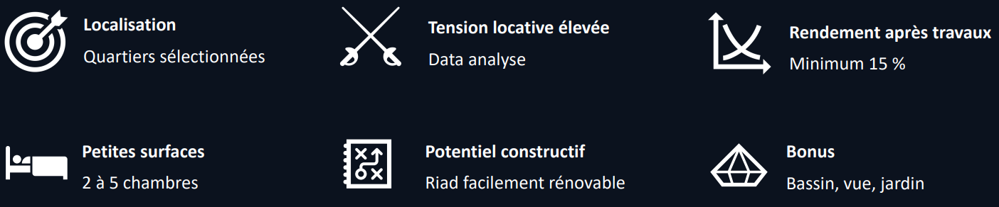 Notre sourcing est d'une importance capitale pour la réussite de vos projets immobiliers. Grâce à une sélection méticuleuse de nos partenaires et fournisseurs, nous pouvons garantir la qualité des emplacements de chaque projet. Nos professionnels marocains déployés à Marrakech directement nous permettent d'identifier les meilleures opportunités sur le marché, de vous proposer les prix les plus compétitifs, et d'anticiper les tendances.