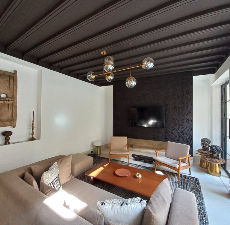 Marie et Alain, un couple de jeunes retraités, ont décidé de quitter la France pour s’installer à Marrakech et profiter d’une vie plus douce et chaleureuse. Ils nous ont confié la conception de leur riad, un cocon moderne et charmant de 121 m² parfaitement adapté à leurs besoins.